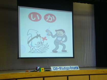 成城警察署の方が「いかのおすし」のお話をマジックやクイズを交えながらしてくださいました。ちなみに 「いかのおすし」とは、身を守るための
