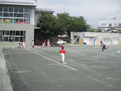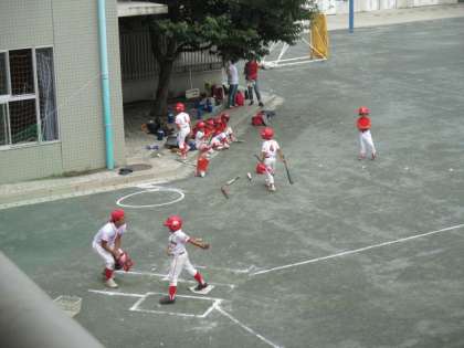 改修工事が終わり、きれいになった校庭では、朝から八幡山レッドソックスの子どもたちが練習に励んでいました。久しぶりのバッティング練習では、校庭の端まで打球がのびて、必死にボールを追いかけていました。校庭からも元気な子どもたちの声が聞こえてきて、とてもうれしいです。
