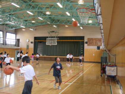 後半の部活動体験が始まりました。今日は、午前に吹奏楽部、午後はバスケットボール部に、八幡山小からはそれぞれ2名の児童が参加しました。バスケットボールは、7月のチャレンジスクールでもお手伝いいたただいた先輩たちが、大きなボールに戸惑っている児童をマンツーマンで丁寧に指導してくれました。緑丘中の皆さんには、毎回貴重な練習の時間を割いていただき、本当にありがとうございます。
