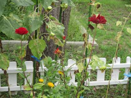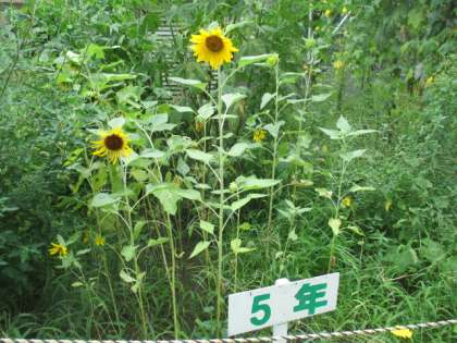 学級園をはじめ、校舎の裏の植物がとても元気です。先週から雨の日が多かったので、ぐんぐん成長しています。1年生に場所には朝顔が、5年生のところはヒマワリが咲いています。その他にも、主事さんたちに手入れしていただき、いろいろな植物が見られます。緑が多い、自然の豊かな八幡山小学校です。