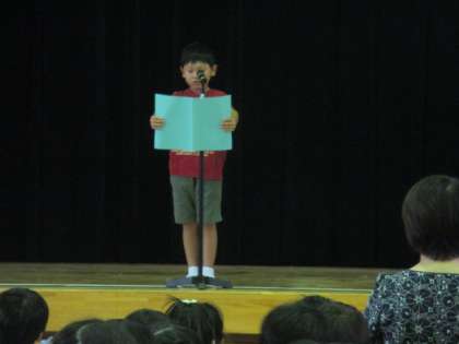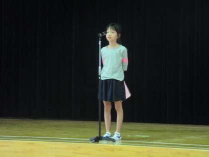児童代表の言葉は、1年生と3年生。立派に2学期にがんばることを発表することができました。校長先生から、新しく八幡山小学校にやってきた友だちを紹介していただきました。総勢465人の児童で、2学期の八幡山小学校がスタートしました。