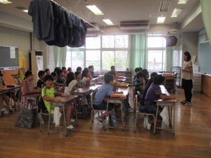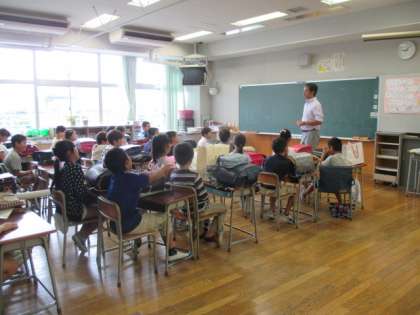 3年生は、担任の先生からの2学期よりよいクラスにしていくためのお話を、子どもたちが真剣に聞いていました。4年生は、がんばった夏休みの宿題を提出していました。今日はどの学年もこの夏休みをふり返り、そして、それぞれが2学期にどんなめあてをもって過ごしていくかを考える時間だったようです。