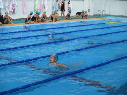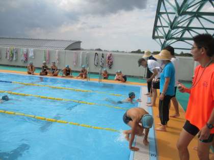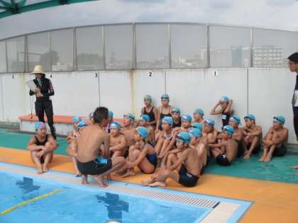 いよいよ自分がエントリーした種目で記録をとります。先生の説明を聞く子どもたちの表情には硬さが見られましたが、良い意味での緊張感は好記録につながります。友だちのチャレンジに周りからは自然と歓声が上がり、泳ぎ切った6年生の表情には、達成感で満ち溢れていました。