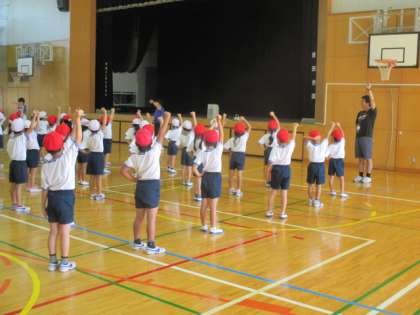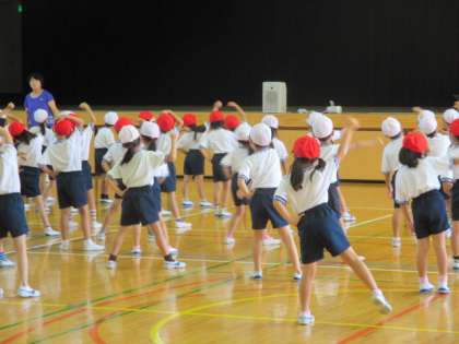 運動会に向けて、1年生もダンスの練習に入っています。今日は体育館での指導がありました。全体指導する根岸先生の踊りをよく見て、一生懸命真似ようとがんばっていました。みんなノリノリでやる気満々です。おそらくすぐにマスターしてしまうでしょう。1年生全員で楽しく踊る姿が楽しみですね。