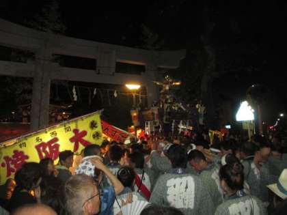 いよいよ神輿が鳥居をくぐり、境内に入ります。担ぎ手のかけ声を共に、周囲からは大歓声が上がりました。