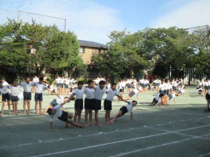 今日の午後、5・6年生は組体操の通しの練習を校庭でしました。校庭での全体を通しての練習も、仕上げの段階に入ってきています。細かい技の確認をしながら、場面場面での隊形移動もスムーズにできるようにと、子どもたちのみならず、先生たちも気合が入っていました。