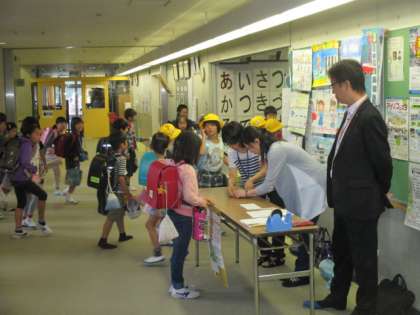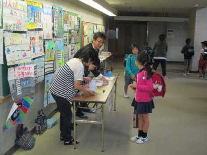 昨日から日本語検定の申し込み受け付けが始まりました。今朝も学校運営委員の方々に昇降口に立っていただきました。明日も登校時間帯に受付をいたします。たくさんの申し込みをお待ちしています。