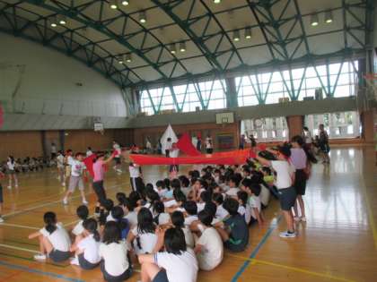 今日は、午後の応援の練習を行いました。校庭と比べると狭い体育館なので、少し窮屈そうでしたが、しっかり声が出ていました。全校でやる応援の練習もこれで最後です。明日はみんなでしっかり応援して、運動会を盛り上げましょう。