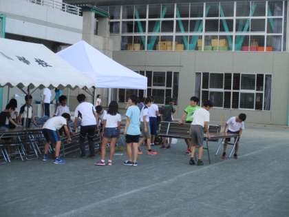 6時間目、6年生は明日の運動会の前日準備を行いました。イスや机を運んだり、ラインを引いたりなど、各係に分かれて、担当の先生たちの指示に従いながら、会場のいろいろな準備をしました。