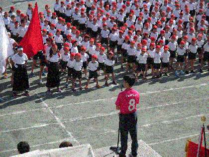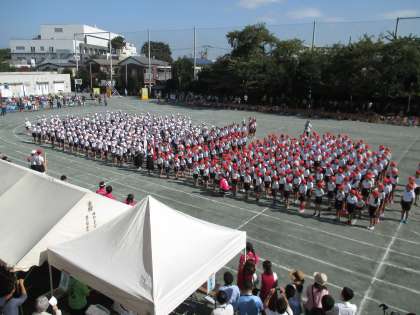 開会の言葉により、これから平成27年度八幡山小学校の運動会が始まります。すがすがしい青空が広がり、絶好の運動会日和です。