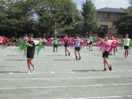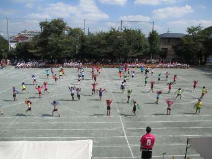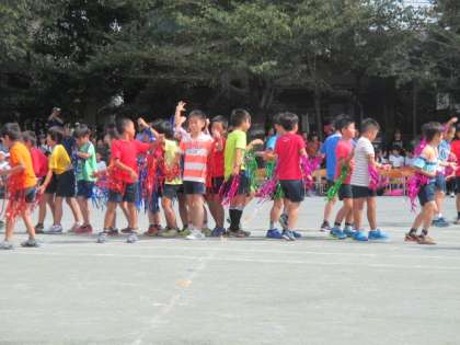 3年生のダンスは、サンバとロックの融合させた踊りです。サンバでは華やかに、ロックでは力強く踊りました。子どもたちが自分で創作したパートもあり、ノリノリでリズムに乗ったダンスナンバーでした。