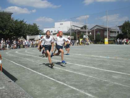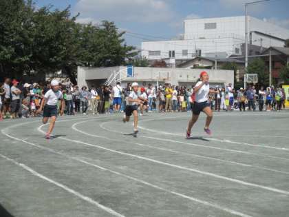 6年生の短距離走は100mです。小学校最後の運動会の徒競走。みんな全力で走り切りました。さすが6年生となると、走りにも迫力があります。レースが進むにつれ、会場からの歓声も自然と大きくなっていました。