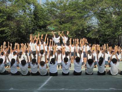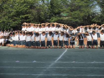 5・6年集合しての団体技。きれいなウェーブになりました。