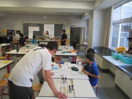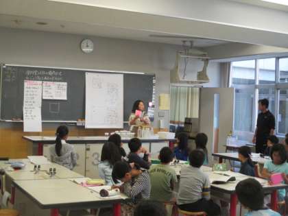 来週の研究全体授業に向けて、今日は4年1組で、久保教諭による理科の事前授業が行われました。「自然の中の水」の単元の学習で、空気中にはどの場所にも水蒸気があるのかを確かめる授業です。子どもたちは水蒸気のある場所を予想し、グループでそれぞれの場所に行って実験しました。来週は2組で同じ授業を行います。運動会が終わって間もないですが、先生たちは日々授業の研究にがんばっています。