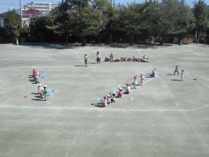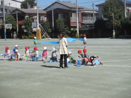 今日は、松沢保育園の子どもたちが、本校の校庭を使って運動会の練習をしました。17日の土曜日の本番に向けて、練習も追い込みです。強い風が吹く中でしたが、みんな一生懸命がんばっていました。