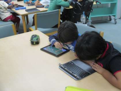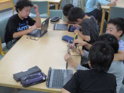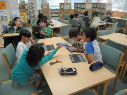 パソコンクラブは、導入されたタブレットを初めて触りました。まだ、本格的に授業で使用していませんが、子どもたちはやりながらどんどん使いこなしてしまいます。さすがです。この後、先生たちはタブレットの導入研修を受けます。