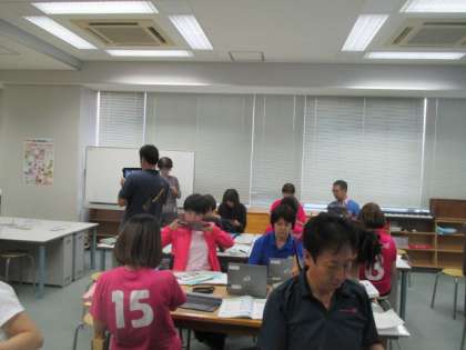 放課後、先生たちは導入されたタブレットの研修を受けました。基本的な操作から授業での活用方法まで、新しいことがいろいろとできることに驚きながらも、今後どう授業に活かそうかを考えながら、研修を受けていました。順次普段のいろいろな授業で使用できるように、さらに研修をしていきたいと思います。