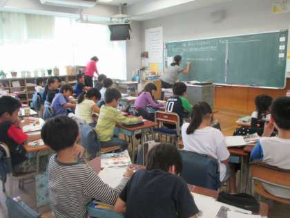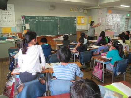 3年2組の理科は、講師の浦野先生が授業を受け持っています。今日は、鏡の学習のまとめとして、「実験ノートをまとめよう」の課題に取り組んでいました。前回の授業で実験した「鏡ではね返った日光はどのように進むか」の予想と結果を振り返りながら、ノートにまとめます。先生の発問にも反応しながら、しっかりノートをとっていました。