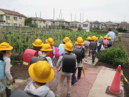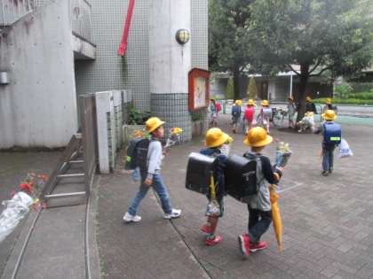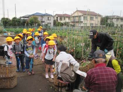 今日の下校時に1年生は、学校の近隣の畑で栽培されている菊の花をいただきました。本校のさまざまな教育活動でお世話になっている地域の方のお心遣いで、毎年1年生にプレゼントしていただいています。今日は畑で栽培されている野菜なども見学させていただき、ひとりひとりに花束にして渡されました。子どもたちもきちんとお礼を言って、うれしいそうに帰っていきました。たくさんのお花を準備していただき、本当にありがとうございました。