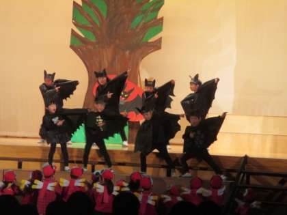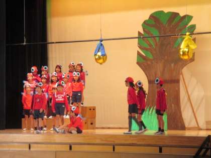 1年生は初めての学芸会。劇『あした とんぼの うんどうかい』を演じました。