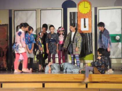 最後はもちろん6年生。みんな役になりきって、『ユタと不思議な仲間たち』を演じました。
