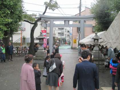 お祝いにはたくさんの方々が駆けつけ、子どもたちの晴れの姿を祝福していました。地域の方々がみんなで協力して、八幡社での七五三のお祝いを盛り上げ、子どもたちも保護者の皆さんもみんな笑顔でした。