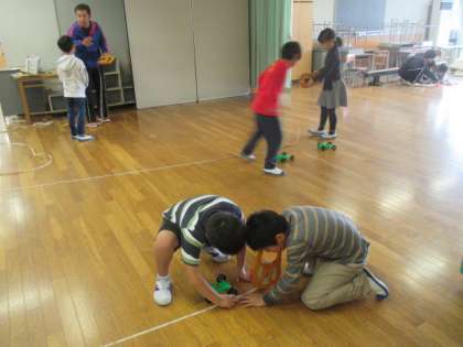 3年生の教室では、来週の理科での研究授業に向けた事前授業が2組で行われました。「ゴムのはたらき」の単元の学習で、ゴムを伸ばす力でプラスチックの車を動かす実験を計画し、伸ばす長さを変えながら走る距離を測定します。2組の子どもたちは結果を予想しながら、友だちと協力して課題に取り組んでいました。来週25日(水)の5校時には、1組で研究全体会の授業が行われます。