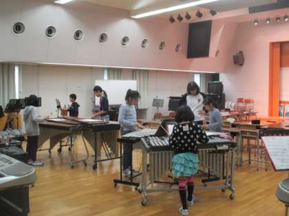 みんなが楽しみにしているクラブ活動。普段あまり使うことのない第2体育館では、卓球クラブが活動しています。みんなで協力して場の準備をし、異学年でグループになって対戦します。手軽にできるスポーツなので、どの子も夢中になって楽しんでいる様子がうかがえました。向かいの第2音楽室では、器楽クラブがいろいろな楽器に挑戦していました。普段の授業では使ったことのない楽器を前に、子どもたちの表情は生き生きとしていました。
