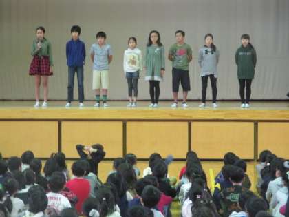 後期の各委員会の委員長が舞台に上がり、委員会の活動内容やめあての発表を行いました。どの委員会も6年生の委員長がしっかりPRをしていました。学校生活をより快適にするために、高学年の皆さん、後半の委員会活動もがんばってください。