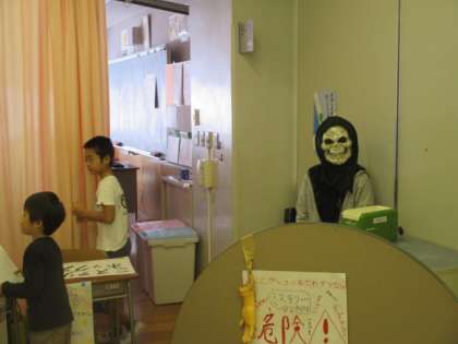 「もぐらたたき」は大人気のお店で、行列ができていました。「ミステリーボックス」には、怖い仮面をつけた子が入り口にいましたが、お店の中に入るとやさしく案内してくれました。