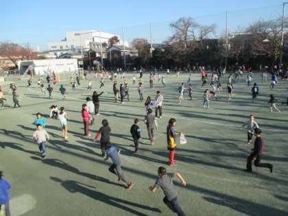 今朝の児童集会は、校庭での全校鬼ごっこ。鬼役の集会委員と先生たちによる、題して「逃走中」集会でした。校庭に隠された宝物を探しながら、鬼役のハンターから逃げ回ります。子どもたちは必死に走って、寒さも吹っ飛ぶ楽しい集会になりました。集会委員の皆さん、前日から準備ご苦労様でした。