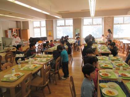 今日は、1年3組と6年3組がいっしょに給食を食べました。6年生はいろいろな場面で1年生のお世話をすることがあり、とてもスムーズに準備が進められます。その姿を見て1年生も、自分のことは自分ですることを学び、成長していくのでした。やさしいお兄さん、お姉さんと食べる給食、いつもより楽しく、おいしくいただけたようですね。
