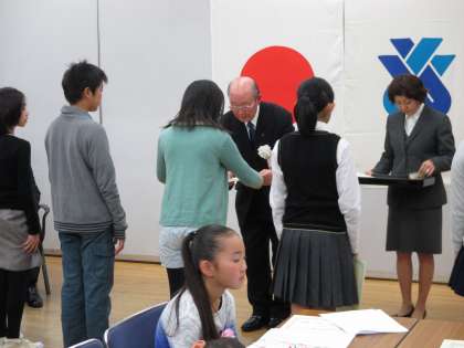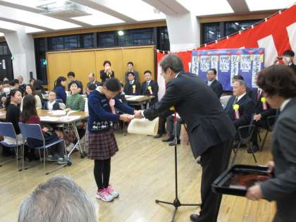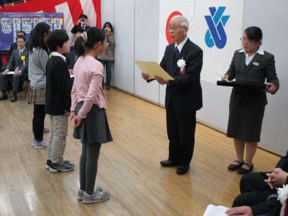 表彰式の様子です。世田谷都税事務所長賞1名(6年女子)、優秀賞1名(6年女子)、佳作1名(5年女子)です。おめでとうございます。