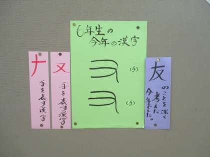 6年生のフロアに、6年生の今年の漢字が掲示してありました。「『友』のことを深く考えた今年でした」と書かれています。1年ふり返ってみると、6年生は確かにお互いに手と手を取り合って協力し、友達との絆を深めた1年でしたよね。今年も残りわずかとなりました。