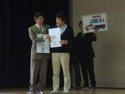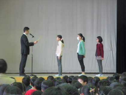 終業式の後、「税を考える週間」小学生書道作品展の入賞者の表彰がありました。生活指導の先生からは、冬休みの過ごし方について、楽しい寸劇を通してのお話がありました。お金の使い方や、交通安全に気をつけて、充実した冬休みにしましょうね。