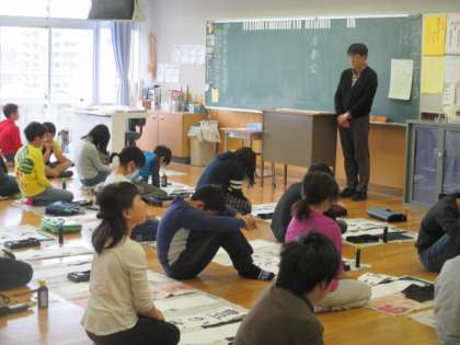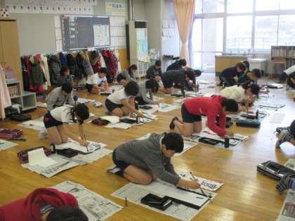 今日は5年生で書き初めが行われました。準備も手際よく、みんな集中してじっくり取り組んでいるところはさすが高学年です。どの児童もよい作品を書き上げていました。
