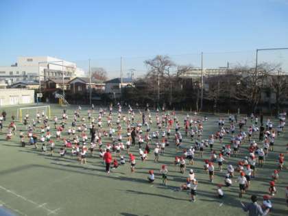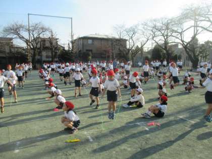 今朝は体育朝会で、全校児童で短なわに取り組みました。準備運動の後、縄の結び方や持ち方などを教わり、お隣さんとペアになって回数を数え合いながら練習しました。今週は寒い日が続いていますが、天気がよい日は校庭で出て、みんなでなわとびにチャレンジしていきましょう。