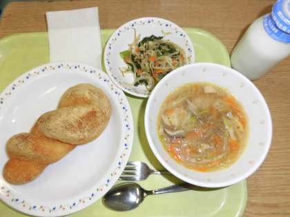 子どもたちの大好きな揚げパンと春雨スープの組み合わせです。入学当初は食の細かった1年生もこの頃はよく食べられるようになり、完食に向けてがんばってくれています。今日はほとんどのクラスで食缶が空になりました。