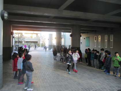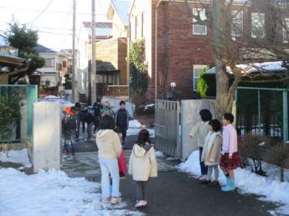 雪の降った次の日の寒い朝でしたが、1年生があいさつキャンペーンで活躍していました。正門・南門の両方に1年生が並び、みんなで大きな声で元気に挨拶をして八幡山小学校の1日がスタートしました。太陽が顔を出し、空気が澄み渡っていて、とても気持ちのよい朝でした。