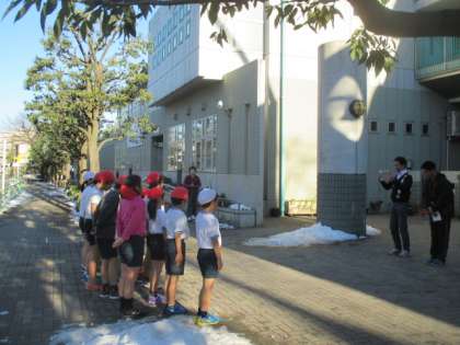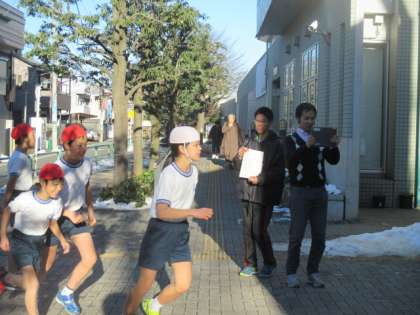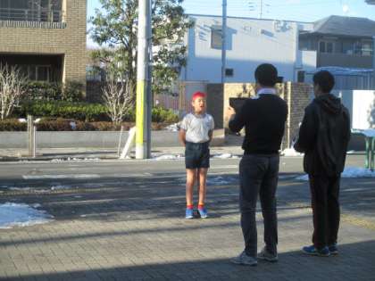 今日のクラブ活動では、来年度のクラブ紹介用のビデオ撮影が行われていました。駅伝陸上クラブは、校庭の外を走った後で、正門前での撮影でした。クラブ長は少し照れながらコメントしていましたが、部員たちは一生懸命にアピールしていました。できあがりがとても楽しみです。
