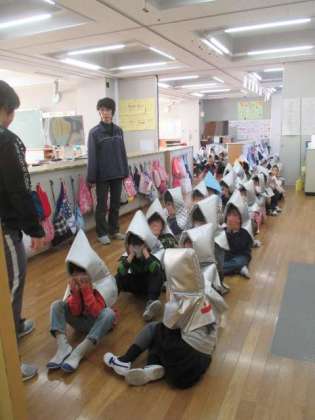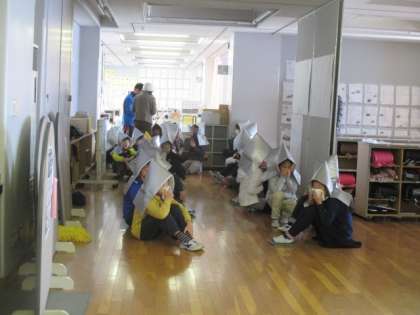 今月の避難訓練は、職員室から出火し、放送が入らないという設定で行われました。非常連絡の方法を教職員が理解し、子どもたちも先生の指示に落ち着いて従います。学校公開期間中でしたが、先生方も含め子どもたちも冷静に訓練に参加することができていました。