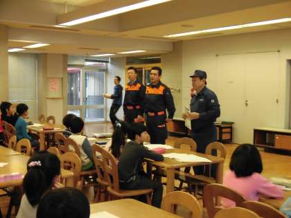 元PTA会長であり、学校運営委員長の尾崎直人さんと世田谷警察署の方々に来ていただき、地域防災を中心に災害時の身の守り方等について話していただきました。