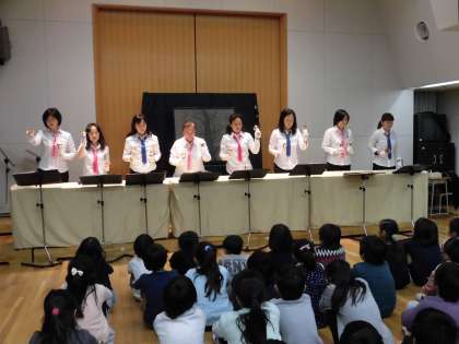 3年生は、4校時ベルフラワーの皆さんにベルの演奏と「モチモチの木」の読み聞かせをしていただきました。「星に願いを」「古時計」などの曲の演奏に子どもたちはうっとり聞き入っていました。「もう、終わり?」ともっともっと聞きたかった子どもたちでした。