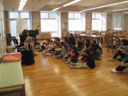 2年生は上北沢図書館の方に来校していただき、いろいろな本の紹介と読み聞かせをしていただきました。全学級、床暖房で暖かいランチルームでの楽しい読み聞かせに、心地よい気分でお話の世界に浸れました。上北沢図書館の皆様、長時間の授業、ありがとうございました。