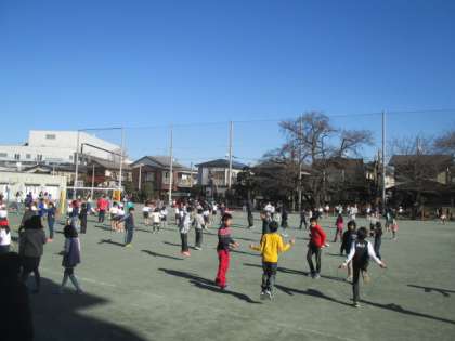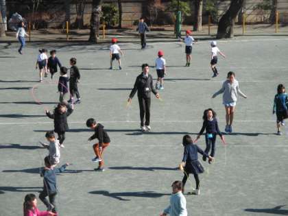 凍結していた校庭の状態が回復したので、中休みから校庭での活動ができるようになりました。久しぶりの校庭で、早速金スポ。全校で短なわにチャレンジです。校長先生も校庭の真ん中で、子どもたちといっしょに挑戦します。冬晴れの太陽の下、みんな笑顔で取り組んでいました。