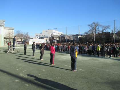 久しぶりの校庭での全校朝会。今朝も底冷えのする厳しい寒さでしたが、8時30分のチャイムが鳴る前には全校児童全員がそろって元気に挨拶することができました。校長先生からは、九州・沖縄でも雪が降ったという話題や、寒い地域の人々の生活についてのお話がありました。また、スポーツでがんばった子どもたちの表彰もありました。今週も寒い日が続きますが、天気の良い日は身体を動かして元気にがんばっていきましょう。