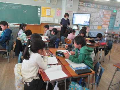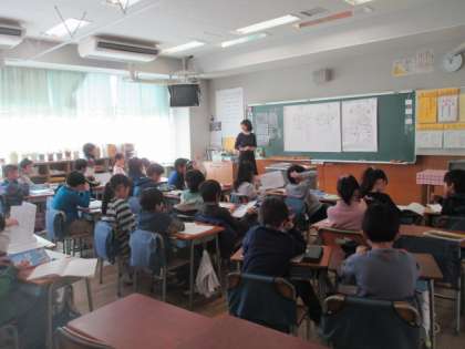 3年2組では、社会科「火事を防ぐ」の単元の授業が、3校時にありました。前時までにみんなで協力して調べた、校内の消防施設についての学習をふり返り、子どもたちが気づいたことをもとに、実際に火災が起きた場合の対処について考えます。自分がこれまで見聞したことをもとに、考えたことを積極的に発言する子どもたちの姿が見られました。学習に対する取り組みの姿勢に、3年生の成長が見らました。