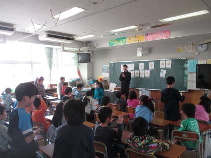 今日は3・4年生で、外国人講師による英語の授業がありました。4年生では英単語のカードを使ったアクティビティーに、積極的に取り組む子どもたちの姿が見られました。講師の先生は給食も一緒に教室で食べます。今学期は低学年と高学年で1回ずつ授業が行われます。楽しみにしていてください。