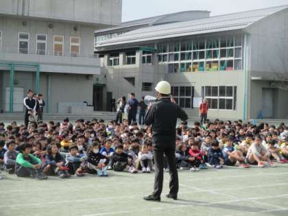 今月の避難訓練は、昼休み中に地震が発生したという想定での訓練でした。校庭で遊んでいる児童は、先生の指示のもとで校庭の中央に集合し、訓練の流れを確認しました。校長先生からは、災害はいつ、どんな時にやってくるか分からないので、油断せず訓練に臨むようにとの話がありました。来月で今年度の訓練は最後です。予告なしで行われますので、しっかり約束を守ってできるようにしましょう。