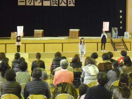 4年生は、総合的な学習の時間の取り組みとして、「二分の一成人式」の発表会を体育館で行いました。たくさんの保護者の皆さんに参加していただき、子どもたちができるようになったことの発表や、合唱などを観ていただきました。